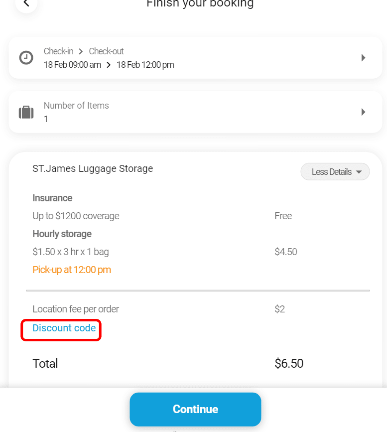 2. Set the drop-off and collection time and date and the number of bags