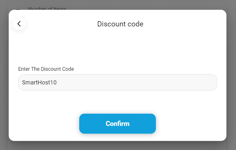 6. Type the discount code 'SmartHost10' and click Confirm