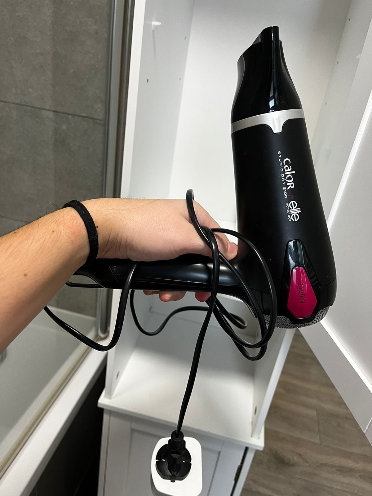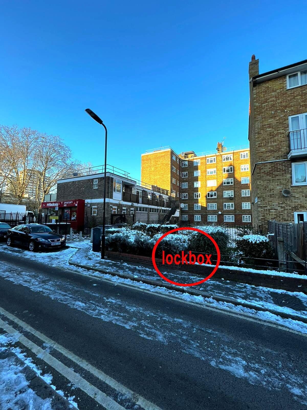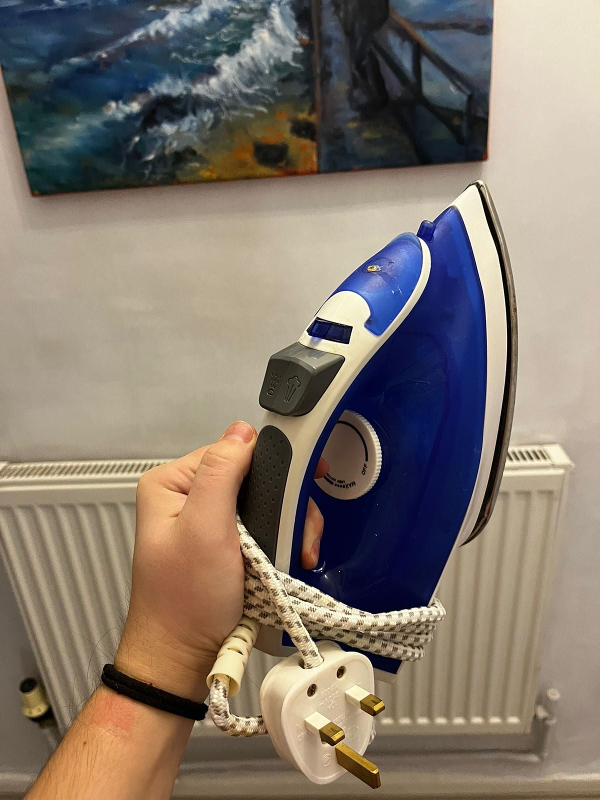 The thermostat is linked to a hive hub (a white box), which is attached to the wifi hub (the black box), between the sofa and the window.
