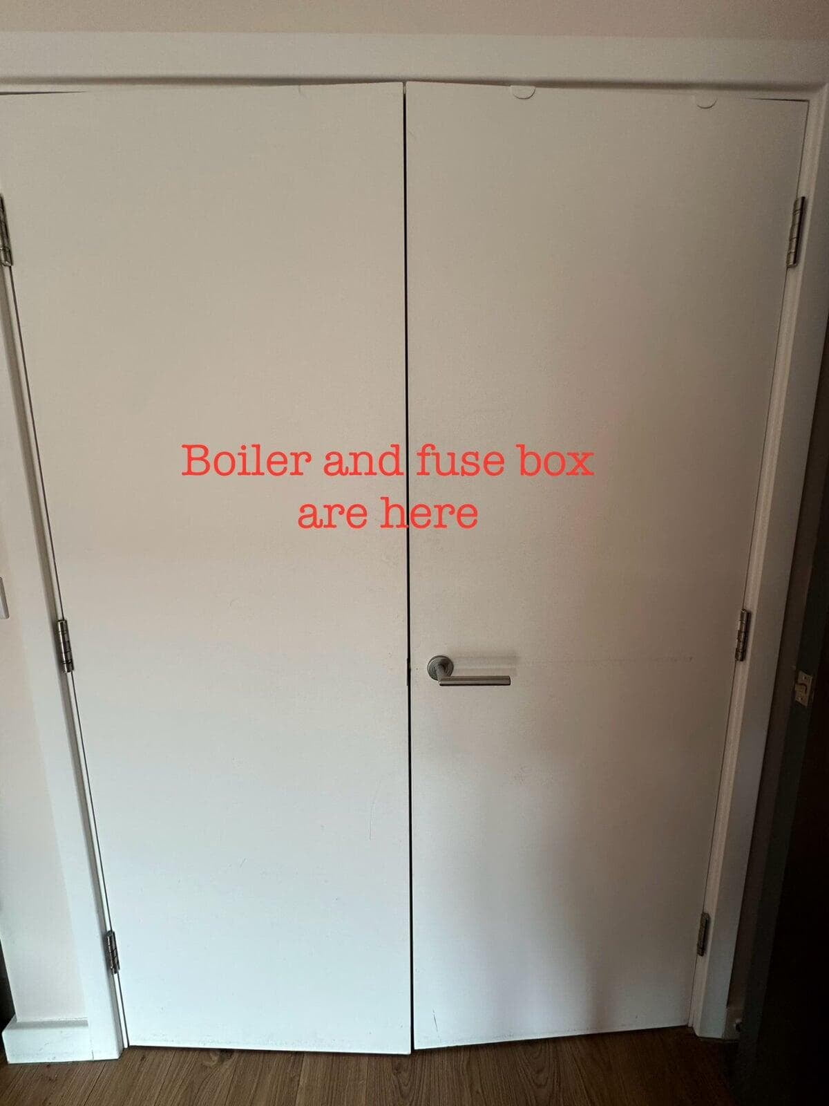Boiler is in the cupboard, together with fusebox and wifi router, don't forget to turn ON the switches before
